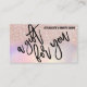 This is the perfect gift certificate business card for a trendy, stylish, girly, and modern businesswoman. This design features simple black brushstroke typography on a faux printed rose gold glitter with pink, peach, blue, and purple iridescent holographic ombre gradient glamourous and chic background. It's the perfect way to allow your customers to buy a gift for their family and friends and at the same time promote your business.