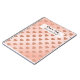 Elegant, modern and stylish design representing rose gold glitter hearts polka dots pattern on a pastel peach colour background.