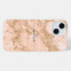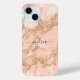 Rose gold glitter marble cell phone case with black script name.