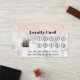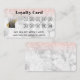 Add your logo to this pretty loyalty card. On a white and grey marble background with rose gold glitter at the top. This has ten circles to represent ten visits of your customer. You will personalize the message at the bottom, stating your offer.