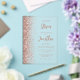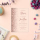 The left-hand edge of this elegant modern wedding invitation features a rose gold faux glitter border. The customizable text combines dusty rose script and sans serif fonts on a clear background.