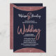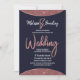 Elegant, chic, and modern faux printed rose gold glitter and rose gold foil circular colour block cutout on navy blue and faux rose gold brush script text, wedding invitations. This classic and sophisticated design is perfect for the trendy and stylish marrying couple. Personalize with your own message on the front as well as a customized monogram initial on the back. All photo print design.