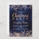 Elegant navy blue watercolor with a faux chic rose gold glitter corporate Christmas party invitation and chic gold glitter confetti. A simple and chic invitation.