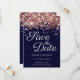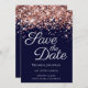 Rose Gold Glitter Navy Elegant Calligraphy Save The Date
