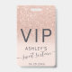 Rose gold glitter ombre script blush Sweet 16 VIP Badge