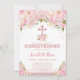 Rose Gold Glitter Pink Blush Flower Christening Invitation