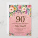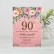 Rose Gold Glitter Pink Floral 90th Birthday Invitation