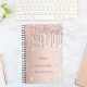 A rose gold background with elegant rose gold and faux silver glitter drips, paint dripping look. Template for a year. Personalize and add a name. The name is written in dark rose gold with a large modern hand lettered style script with swashes. Perfect for school, work or organizing your personal/family life. To keep the swashes only delete the sample name, leave the spaces or emoji's in front and after the name