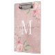 Rose Gold Glitter Pink Watercolor Floral Monogram Clipboard