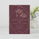 Love is love, same gender wedding, Rose Gold Mrs and Mrs typography on customizable red burgundy and faux rose gold geometric stripes terrarium frame chic lesbian wedding , perfect for elegant, luxurious wedding, fall and winter wedding themes.
