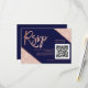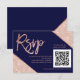 Rose gold glitter script blue QR code rsvp wedding Card