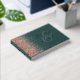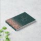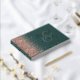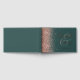 This elegant wedding guest book features a rose gold faux glitter border on a dark emerald green background. Easily customize the real rose gold foil text, with the names of the couple in whimsical handwriting calligraphy over a large ampersand. Add additional text of your choice to the front and spine.