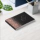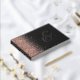 This elegant wedding guest book features a rose gold faux glitter border on a black background. Easily customize the real rose gold foil text, with the names of the couple in whimsical handwriting calligraphy over a large grey ampersand. Add additional text of your choice to the front and spine.