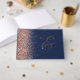 Rose Gold Glitter Elegant Script Navy Blue WeddingDesigned by Akhates Designs
