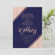 Rose Gold glitter colour block and stripes typography on customizable navy blue and faux rose gold geometric stripes chic wedding , perfect for elegant, luxurious wedding,