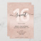 Modern Elegant Rose Gold Glitter Sweet 16 Invitation. Minimalist 16th birthday invitation template design featuring elegant calligraphy hand lettered script font and bush rose gold glitter sparkle.