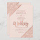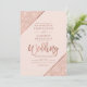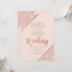 Rose Gold glitter colour block typography on customizable blush pink and faux rose gold geometric stripes chic wedding , perfect for elegant, luxurious wedding, with the accommodation details at the back
