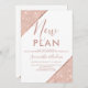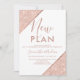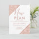 Rose Gold glitter colour block typography on customizable white and faux rose gold geometric stripes chic wedding cancellation new plan , perfect for elegant, luxurious wedding, to announce the postponement of your wedding and new plans