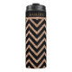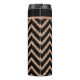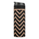 Chic Thermal Tumbler done in a black and glittery looking rose gold chevron pattern. Personalize the golden tan coloured text to read what you want. Great gift idea.