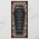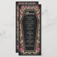 Ajoutez une touche d'élégance gothique à votre festin avec ces menus mariages à la structure en forme de cercueil, ornés d'épines, de roses et d'accents d'or rose contre un arrière - plan noir. Parfait pour un dîner romantique ! Personnalisez le texte, la police et la couleur arrière - plan en fonction de vos préférences de conception. Objets correspondants dans notre boutique pour un thème de fête complet. Veuillez noter que l'or rose sur les cartes n'est PAS du papier à papier et est imprimé en couleurs plates.
