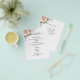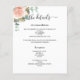 A modern, elegant wedding details/program/timeline. A white background, decorated with a rose gold, blush watercolored rose and eucalyptus greenery. Personalize and add your names and wedding details. Black coloured letters.