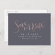 Rose Gold Grey Modern Simple Script Save The Date Announcement Postcard