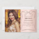 A rose gold gradient background, decorated with a hand-drawn bow and frame. Personalize and add a photo, name and party details.