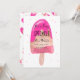 A cute and modern hand drawn ice cream illustration with pink melting flavours, rose gold glitter and faux metallic foil and a cool font It's a baby sprinkle baby shower invitation on a fully customizable background. The polka dots colours are editable and movable with ice cream pattern in the back.