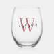 Rose Gold Initial Letter and Black Name | Elegant Stemless Wine Glass