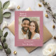 Announce your special day in style with this modern rose gold Save the Date. Featuring your favorite photo framed by a minimalist ivory line border, it perfectly blends timeless elegance with a personal touch. The handwritten script adds a romantic detail, while the clean layout keeps the design contemporary and easy to customize.