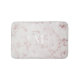 Custom-designed bath mat featuring personalized monogram on modern stylish rose gold and pink marble pattern design.