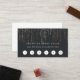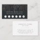 Chic loyalty cards for makeup artists, aestheticians, hairstylists, salons or spas feature classic white lettering on a rich soft black background with vertical strands of faux rose gold foil string lights cascading from the top. Add your business name and customer loyalty offer beneath with six punchout circles, and personalize the back with your contact details.