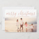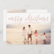 These classic, simple Christmas cards feature a photo and rose gold glitter "merry christmas" in calligraphy script. The back of these cards can be personalized with two additional photos and a longer message.