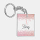 Rose Parties scintillant métal or Nom du monogramme Porte - clé. "Ajoutez sans effort vos initiales à ce design porte - clé chic et branché, avec une délicate parties scintillant brillante rose méticuleusement posée sur un arrière - plan métallique brossé en or rose."