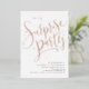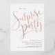Modern surprise party invitation features stylish calligraphy surprise party script and glitters in real rose gold foil, clean and simple, great surprise adult birthday invitation for any age.
