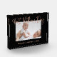 This lovely Mother's Day photo block for the first time mother features a dark, black background with faux rose gold, modern script typography that says "First Mother's Day." Add a photo of her and the baby, with room to personalize with names and year.