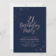 Let's celebrate the 21st birthday with this stylish party invitation. This design features chic rose gold typography on front and sparkle graphics with a photo on a backside. Replace the sample photo with yours or delete it if you don't want it. The background colour is set to dark blue, but feel free to change it. More birthday invitations and party supplies are available at my shop BaraBomDesign. If you need a custom design, please contact me via email barabomdesign@gmail.com