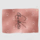 Rose gold faux metallic looking background, dark rose gold and black text. Personalize and add your monogram initials and name. The name is written with a modern hand lettered style script. Your monogram initials as background pattern.