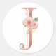 Rose Gold Monogram Letter J Blush Pink Flower Foil Classic Round Sticker