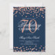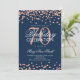 Rose Gold Navy Blue 70th Birthday Glitter Confetti Invitation