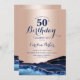 Rose Gold Navy Blue Agate Marble 50th Birthday Invitation