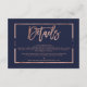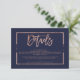 Rose Gold typography on customizable navy blue rose gold geometric stripes half frame chic wedding directions and details , perfect for elegant, beach wedding,