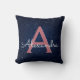 Rose Gold & Navy Blue Sparkle Glitter Monogrammed Throw Pillow