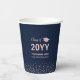 This modern graduation party paper cup features rose gold typography "Class of 20YY (graduation year)" and a graduation cap graphic with a confetti background. You can customize the text in black. More colour options and party supplies are available at my shop BaraBomDesign.