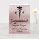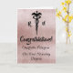 Rose Gold Nurse Graduation Congratulation Card features rose gold pink background,black caduceus medical symbol and a stylish typography.Inside of the card has a message template.A perfect design to congratulate a graduate on completing the nursing degree.Please click the personalize button to customize it in your own text.
