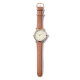 Men's Rose Gold Vintage Watch with a Brown Leather Strap, showcasing bold Arabic numerals in rose gold (#B76E79) on an off-white (#F5F5DC) background. This customizable timepiece can be personalized with your monogram, name, or image, making it a classic and sophisticated choice for work or formal events.