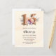 A modern, stylish and glamourous invitation for a Quinceañera. A peach watercolored coloured background, decorated with a peach and purple watercolored flower. The name is written with a modern hand lettered style script. Personalize and add your party details. Number 15 is written with a balloon style font, script.