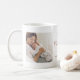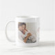 This lovely Mother's Day photo mug for the first time mother features a simple white background with faux rose gold modern script typography that says "First Mother's Day." Add two photos of her and the baby, with room to personalize with names and year.
