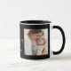 This lovely Mother's Day photo mug for the first time mother features a dark black background with faux rose gold modern script typography that says "First Mother's Day." Add two photos of her and the baby, with room to personalize with names and year.