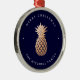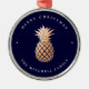 Rose Gold Pineapple on Navy Blue | Christmas Metal Ornament